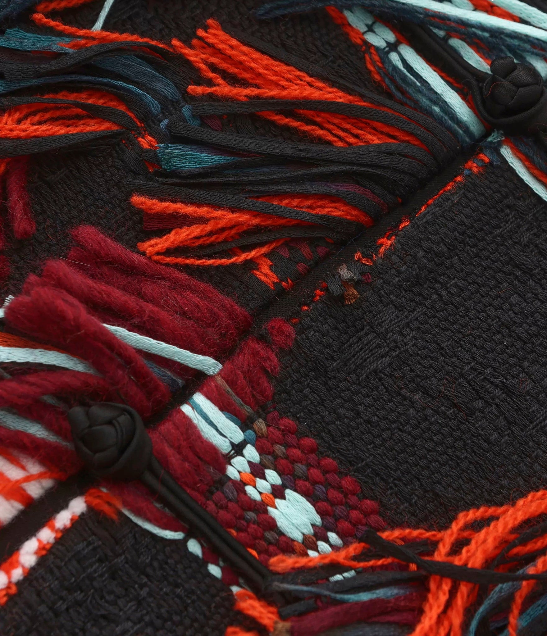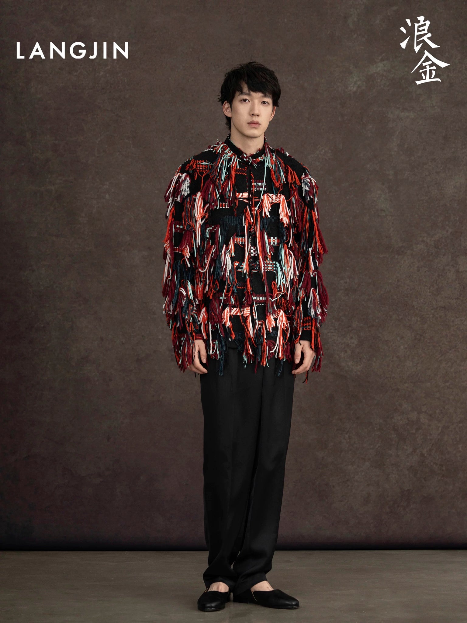 Le col Mao en laine, orné de lanières de franges noires et rouges, allie confort et style. Sa conception ethnique revisité permet d'ajouter une touche distinctive à toute tenue. Fabriqué à partir de laine de qualité, il offre chaleur et durabilité, idéal pour les températures fraîches.
