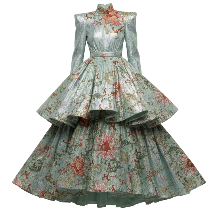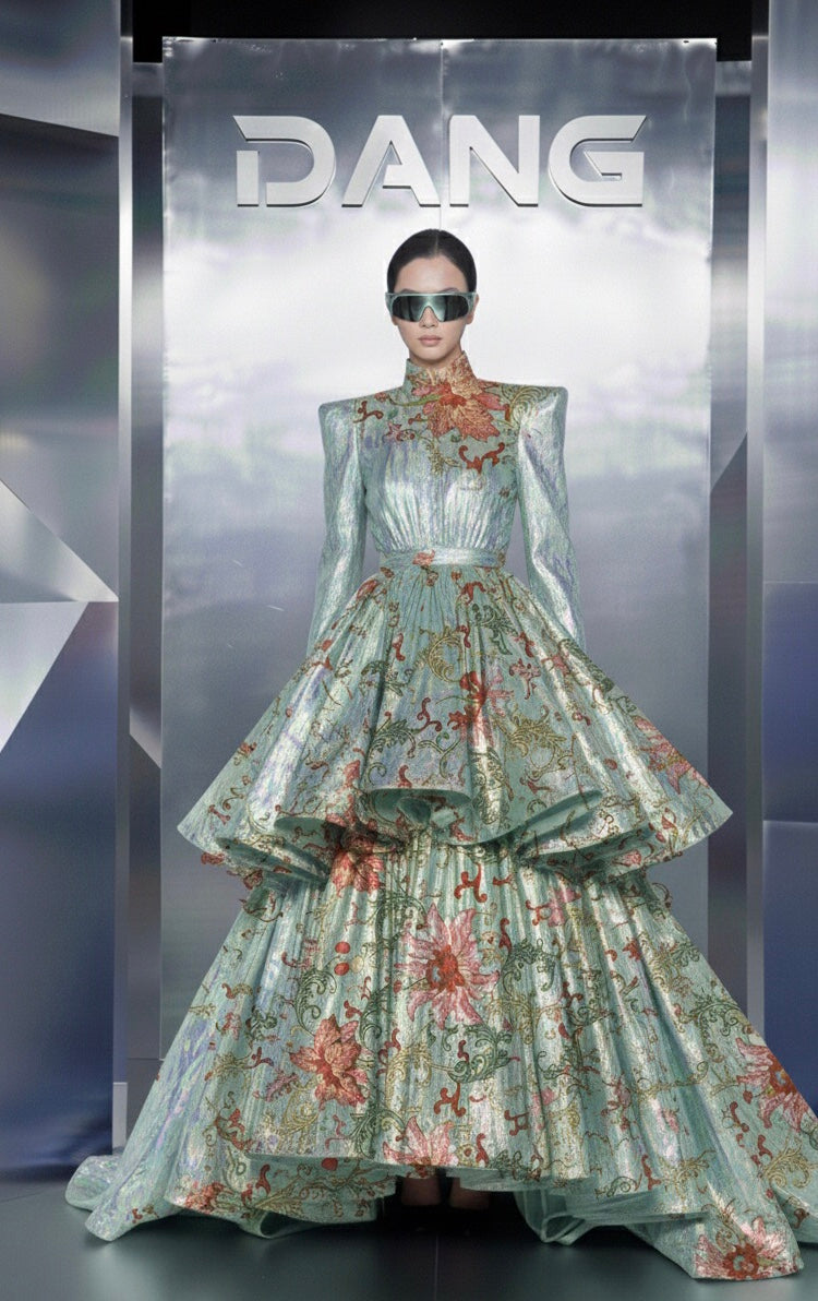 robe du soir en tencent paier froissé motifs pivoines chinois, Vanida Dang couture